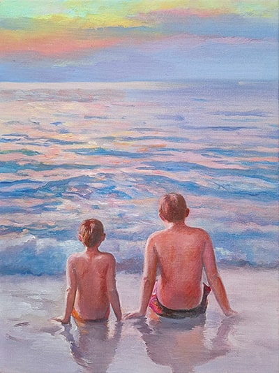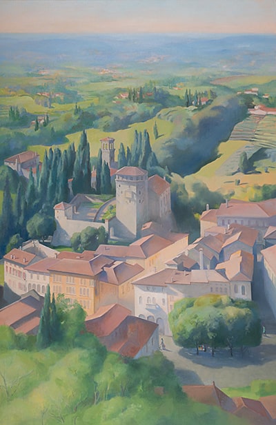 Good Night. 2015 Oil on canvas. 40x50 cm. Private CollectionUntitled. 2019 Oil on canvasUntitled. 2019 Oil on canvasUntitled. 2019 Oil on canvasView of Castello della Regina Cornaro of Asolo. 2023 Oil on canvas. 200x130 cmCa' Corner della Regina. 2023 Oil on canvas. 150x150 cmBoys. 2020 Oil on canvas. 40x30 cmRunning on the Waves. 2024 Oil on canvas. 20x30 cm