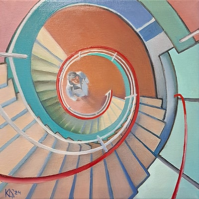 Doubts. 2022 Oil on canvas. 30x30 cmVitality. 2023 Oil on canvas. 60x50 cmDolce Vita. 2016 Oil on canvas. 18,5x24,5cm. Private CollectionBreakfast. 2015 Oil on canvas. 60x50 cm. Private CollectionFreddie Mercury. 2021 Oil on canvas. 140x100 cmMargarita. 2025 Oil on canvas. 30x30 cmUli Keiser in the Wankel-Building. 2025 Oil on canvas. 30x30 cmHigh Flying. 2024 Oil on canvas. 40x30 cm